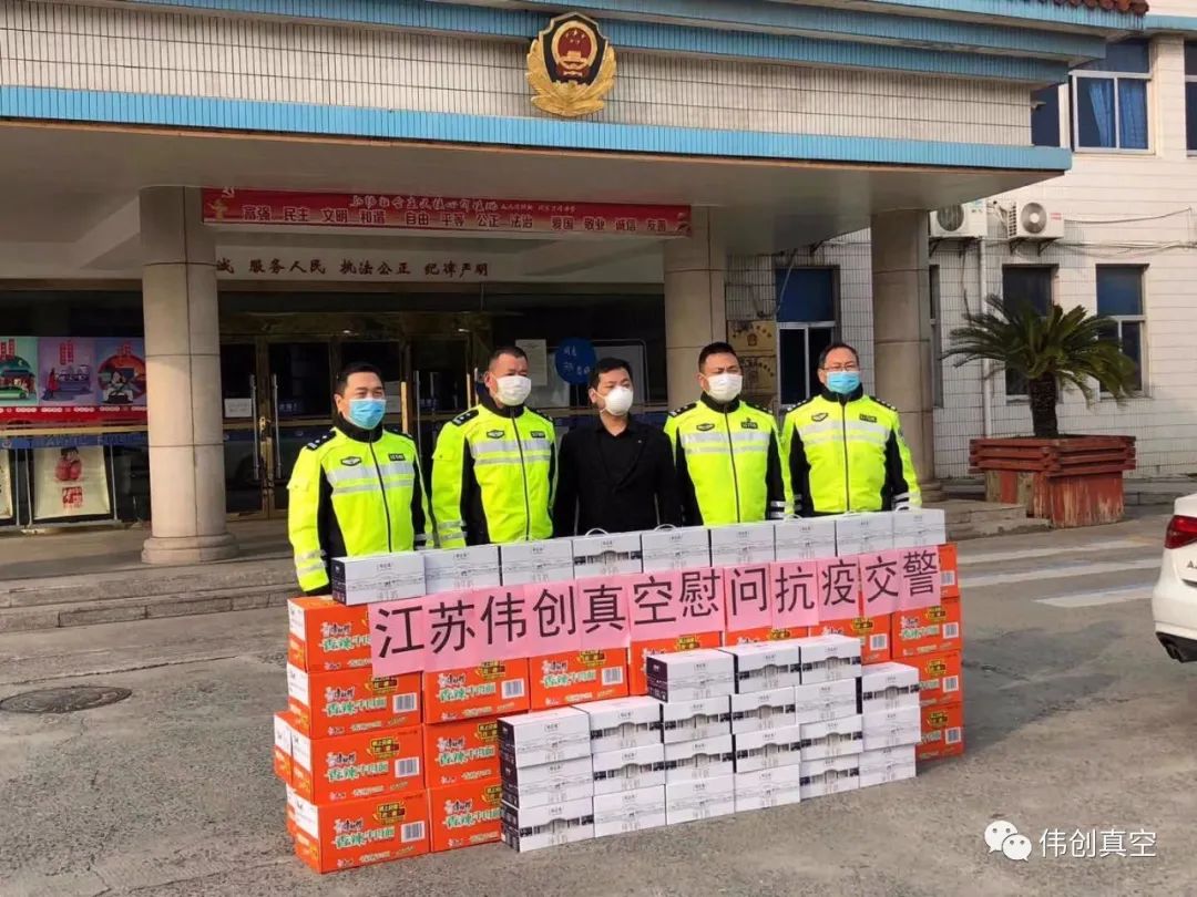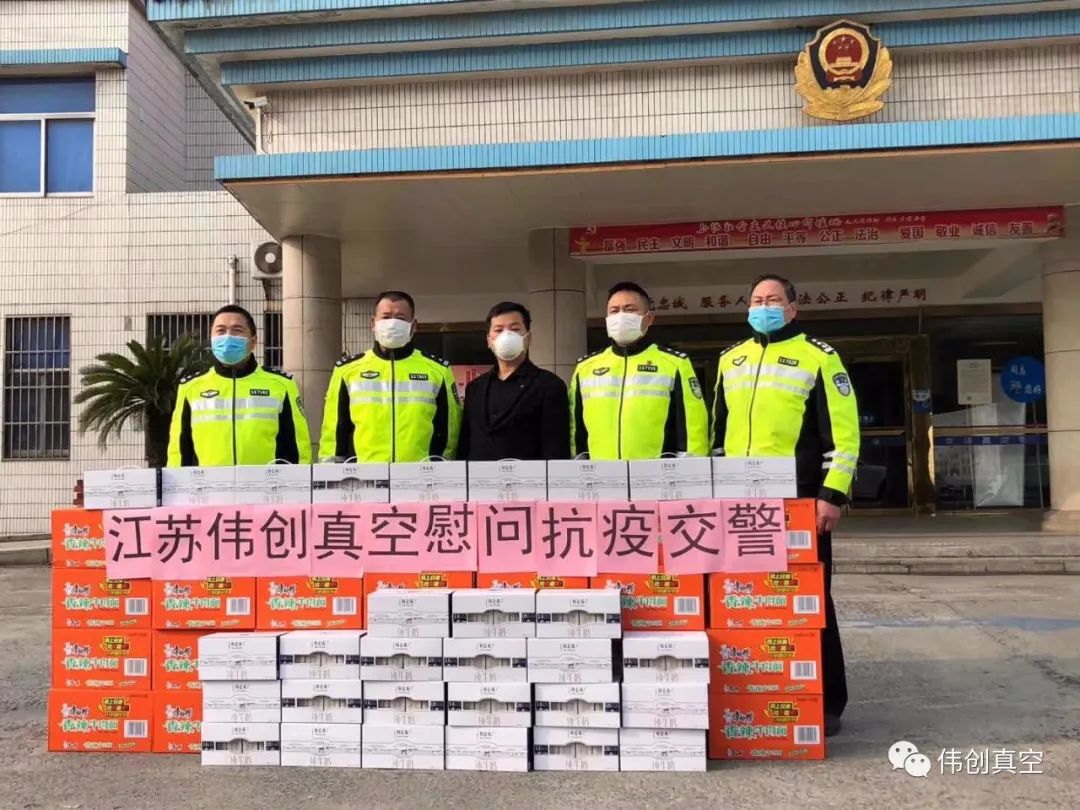 2020年3月4日下午,江苏伟创真空镀膜科技有限公司总经理刘伟亲自为丹阳市开发区交警中队送去牛奶、方便面,以实际行动慰问一线执勤的民警同志。交警中队领导激动地说:十分感谢刘总的无私奉献,直面“疫情”挑战,让我们在丹阳市委、市政府的坚强领导下,不忘初心,牢记使命,携手同行,共克时艰,为坚决打赢疫情防控阻击战贡献各自的力量。